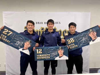 〇…新型コロナウイルス感染拡大の影響で恒例の新人選手トークショーが初めてオンラインで行われた。ドラフト1位・山下、同2位・元(中京)、同3位・来田(明石商)が参加。山下は「1年目で1軍を経験できるように。経験したら抑えられるようにしたい」と抱負。将来の中軸候補コンビとして期待される元と来田は、「レギュラーをつかめるように」と声をそろえて意気込んだ。