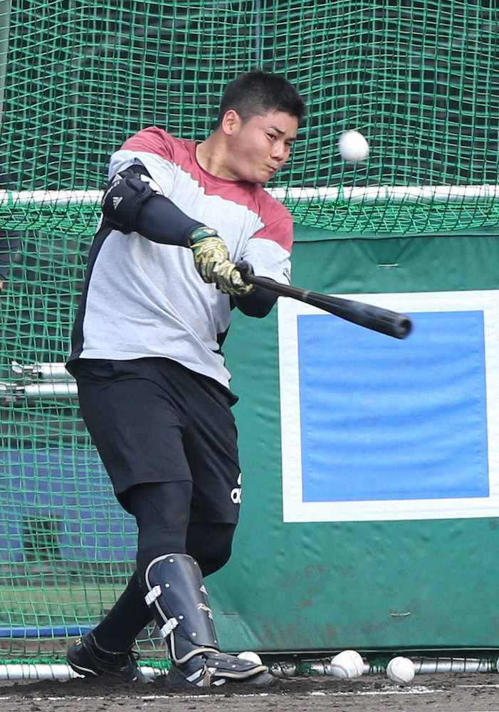 田中と名勝負を繰り広げるためにも、打撃力の向上が必須だ。沖縄・名護で行っている先乗り自主トレのフリー打撃では、45スイングで7本の柵越えを披露。7本中3本は左翼へ運び、中堅から左翼への逆方向の強い当たりが見られた。バットのヘッドが落ちてしまう悪癖を修正するため、バットを出すタイミングを早める新打法に取り組んでおり「本塁打だけでなく、いい打球が多かった。(左翼方向へも)狙ってしっかり打てるようになってきた」と手応えを口にした。