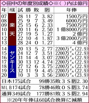 区切りの日米通算200勝にも23勝で到達する。日本でのシーズン20勝投手は過去7年間出ておらず、今季中の達成は容易ではないが、最後にマークしたのは他ならぬ13年の田中自身(24勝)。2度目の大台突破で一気に200勝に到達すれば2度目のリーグ制覇にも近づくがどうか。
