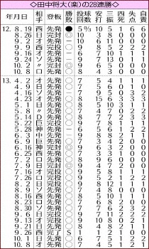もう一つ注目したいのは日本球界で継続中の連勝記録。12年8月26日の日本ハム戦から渡米前のリーグ戦最終登板となった13年10月8日のオリックス戦にかけて、シーズンをまたいだプロ野球最多連勝記録となる28連勝を達成した。メジャー挑戦で記録更新は滞ったが、日本復帰で8年ぶりのリスタート。果たして、どこまで伸ばせるか楽しみだ。
