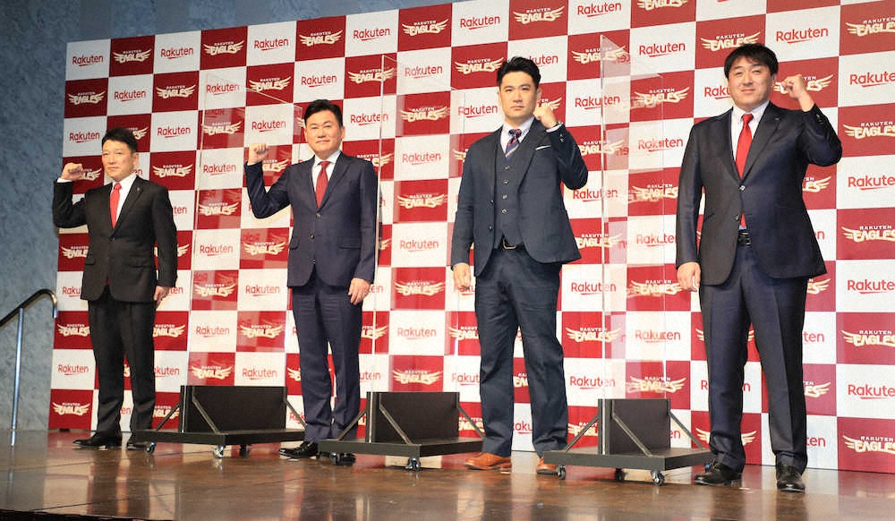 ヤンキースからFAとなり、2013年以来8年ぶりに楽天への復帰が決まった田中将大投手(32)が30日、都内のホテルで会見した。会見には三木谷浩史オーナー(55)が同席する異例の待遇。立花陽三球団社長(50)、石井一久GM兼監督(47)も顔をそろえ、豪華な布陣での会見となった。