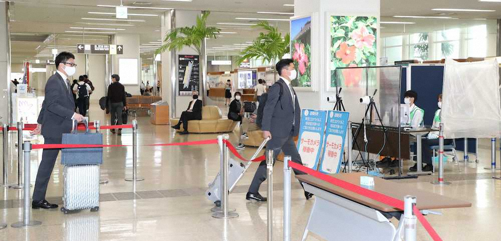 例年なら意気込むような、ワクワク感を感じる一日。だが、那覇空港の到着ロビーで待ち受けていたのはファンではなく、サーモカメラだった。乗客の体温を測るために設置され、レンズ越しに数人の係員が一人一人をチェック。予想はしていたが、いつもとは違う無機質な光景だった。