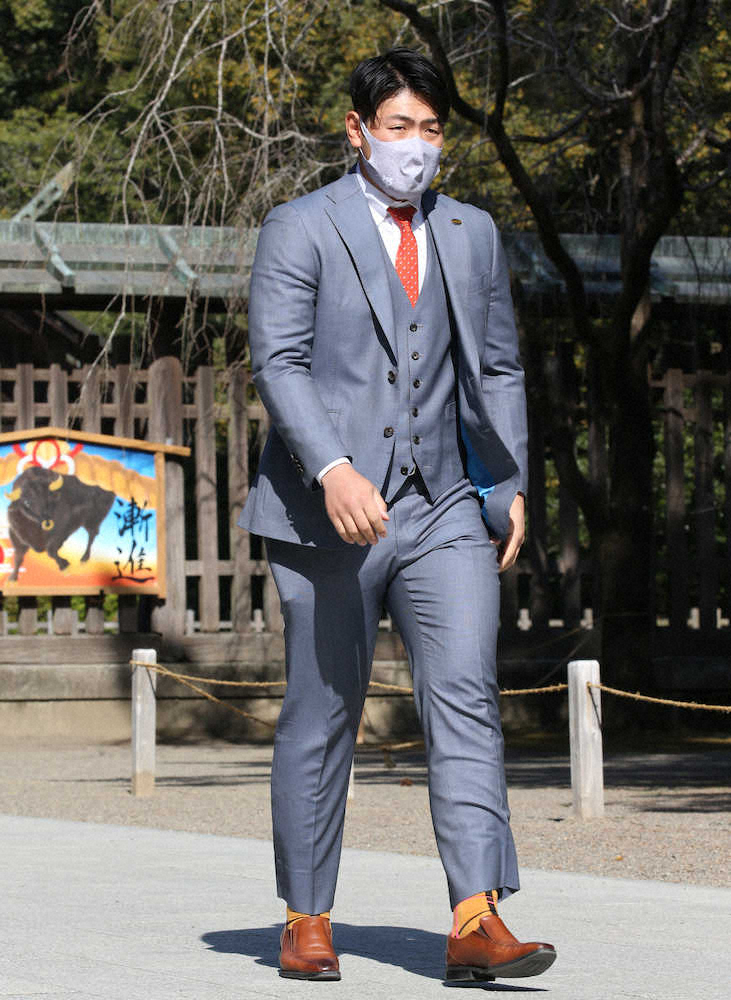<巨人宮崎キャンプ>参拝を終え、引き上げる岡本(撮影・森沢裕)