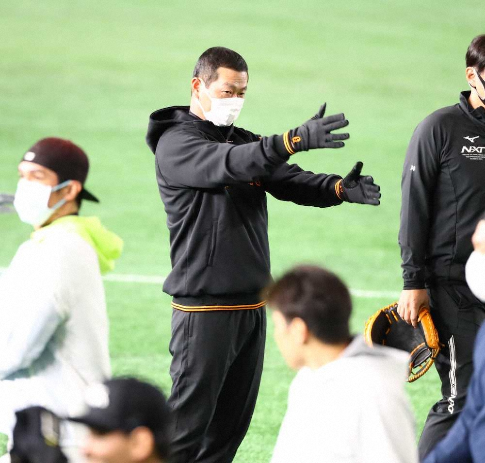 11時30分の練習開始時間に合わせ、ノックバットを手にグラウンドに姿を見せた。残念ながらユニホーム姿ではなかったが、胸には「GIANTS」のロゴ、左肩には背番号「73」の入ったフード付きのジャージー姿だった。「日本一を目指してやっていますので、日本一を獲れるように。投手陣が安定すれば監督の采配もやりやすいでしょうし、野手も安心して守れると思う。そして余裕を持って攻撃もできると思いますので、何とかピッチャー陣のレベルを上げていきたいなと思っています」と抱負を述べていた。