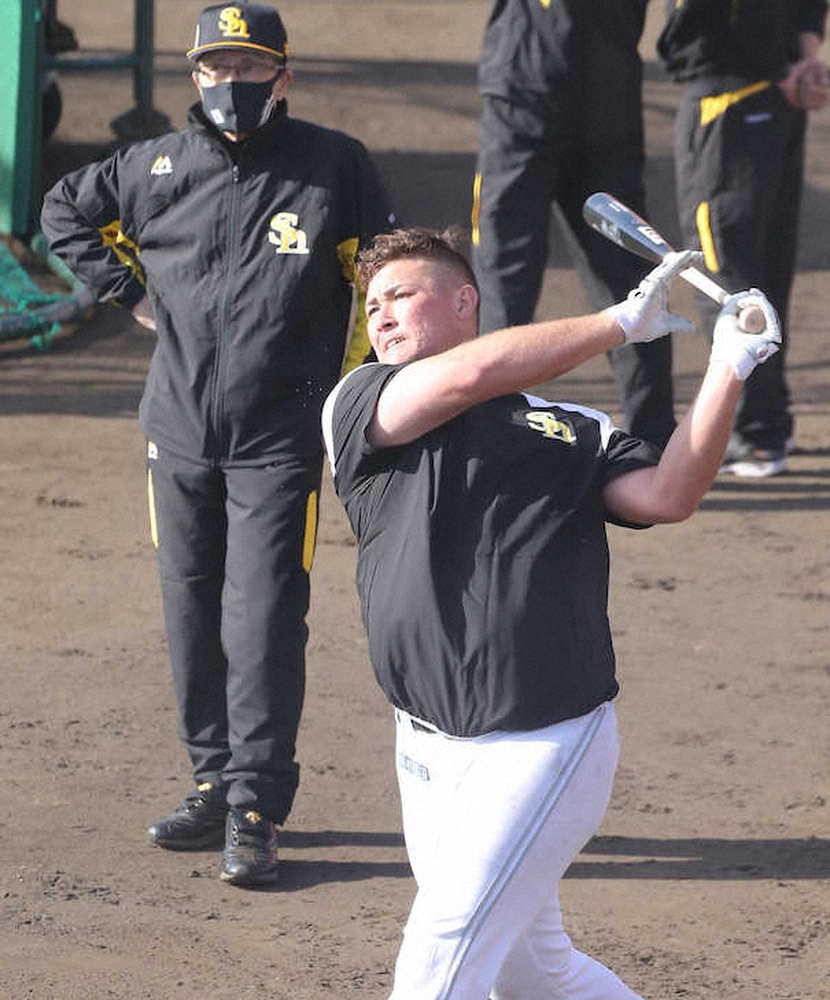 19スイングのほとんどが柵越えし「これで飛ぶんだ」と納得していた。王会長も「それでいいんだよ」とうなずく。1メートル89、120キロの重厚ボディーから放たれるパワーが自慢だが、速さを意識し一皮むけた。