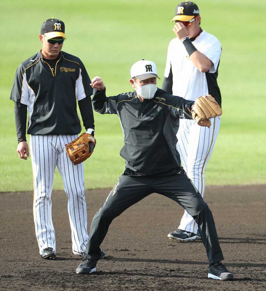 遊撃のポジションで大山と木浪が藤本敦士内野守備走塁コーチのノックを受け、二塁のポジションでは糸原と今季巨人から新加入した山本が久慈照嘉内野守備兼バントコーチからノックを受けた。前日の早出練習に続き川相昌弘臨時コーチ(56)による「川相塾」も開講。捕球から送球までの動作をスマートフォンで動画撮影し、身振り手振りで指導するシーンも見られた。