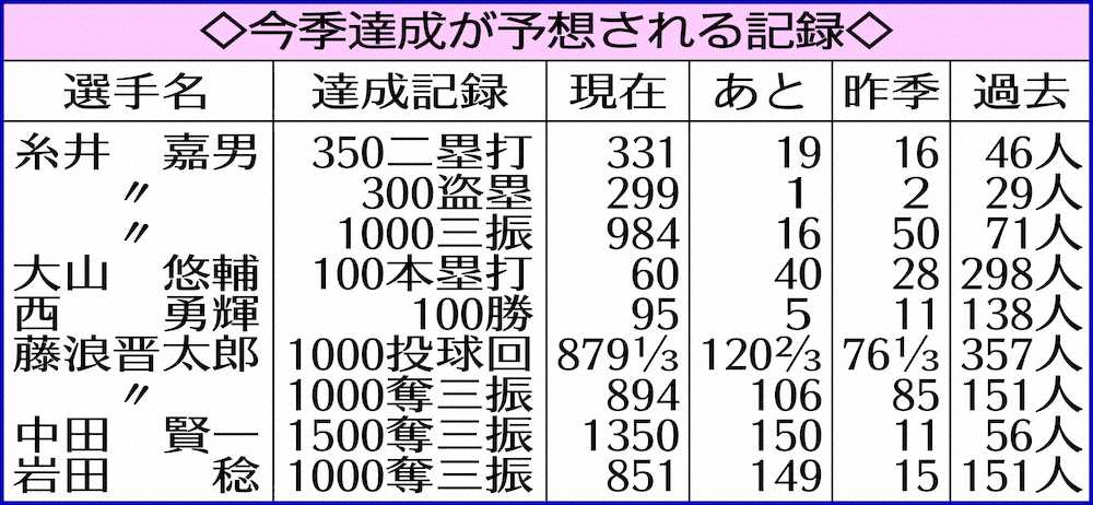 今季達成が予想される記録・阪神編 西勇、通算100勝あと5勝 古巣オリックスに勝てば12球団勝利