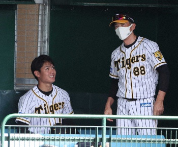 <阪神宜野座キャンプ紅白戦>2回表終了後、ベンチで矢野監督(右)と話す西純(撮影・坂田 高浩) Photo by スポニチ 阪神・西純 12球団最速の紅白戦で開幕ローテ入りアピール 2回零封、4番… ギャラリーで見る この記事のフォト 2021年02月05日の画像一覧 もっと見る 2021年02月05日の画像をもっと見る
