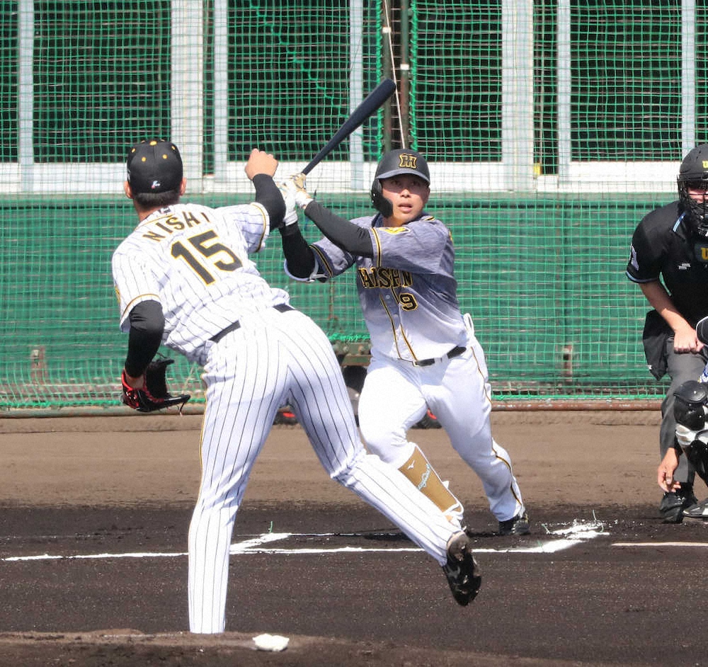 定位置争いの激化をもくろんだ矢野監督は、狙い通りの展開に大きくうなずいた。初回は西純が投じた真ん中低め直球を、痛烈にはじき返す左前打。3回の第2打席も、小野の148キロ直球を左前へ運んだ。
