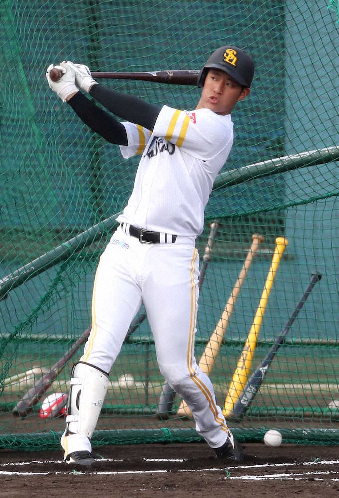 ソフトバンクの宮崎春季キャンプで、上林と栗原が初特打を行った。王球団会長、工藤監督、小久保ヘッドコーチ、城島球団会長付特別アドバイザーの4人が見守る中、上林は183スイング中21本の柵越え。185スイングで14本の柵越えだった栗原を上回った。