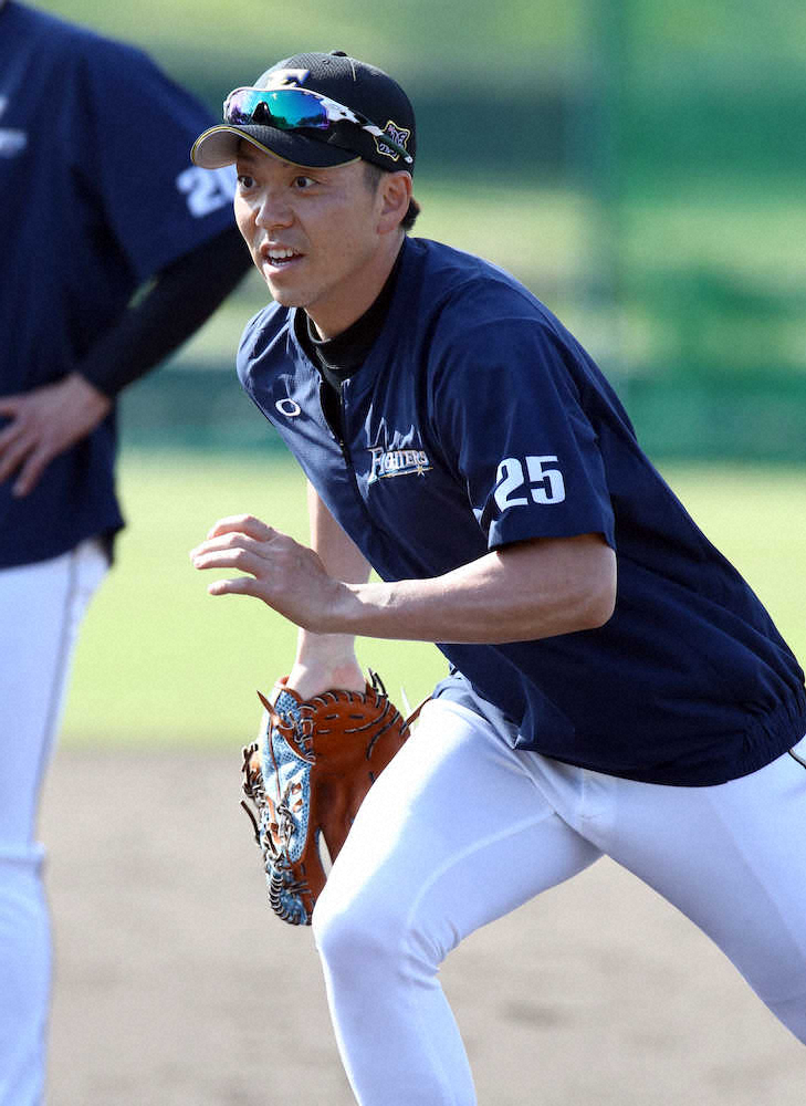 ◎200メートル走をしていた日本ハム投手陣。宮西が通りかかったOBの森本稀哲氏に「ラスト1本、行きましょうよ」。これに森本氏は「無理だって!」。往年の走りは見れませんでした。