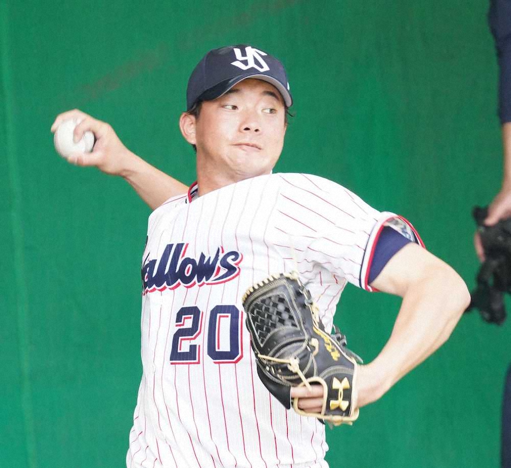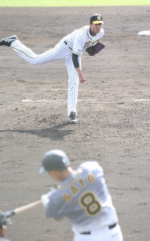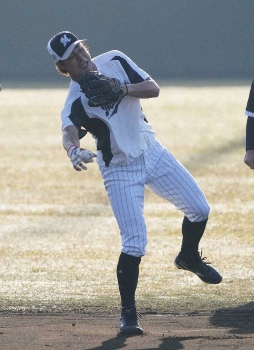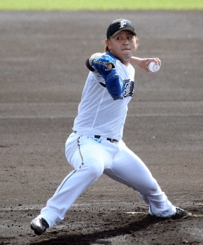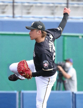 <日本ハムキャンプ>紅白戦で力投する紅組の先発・吉田(撮影・高橋茂夫)=7日、沖縄・名護