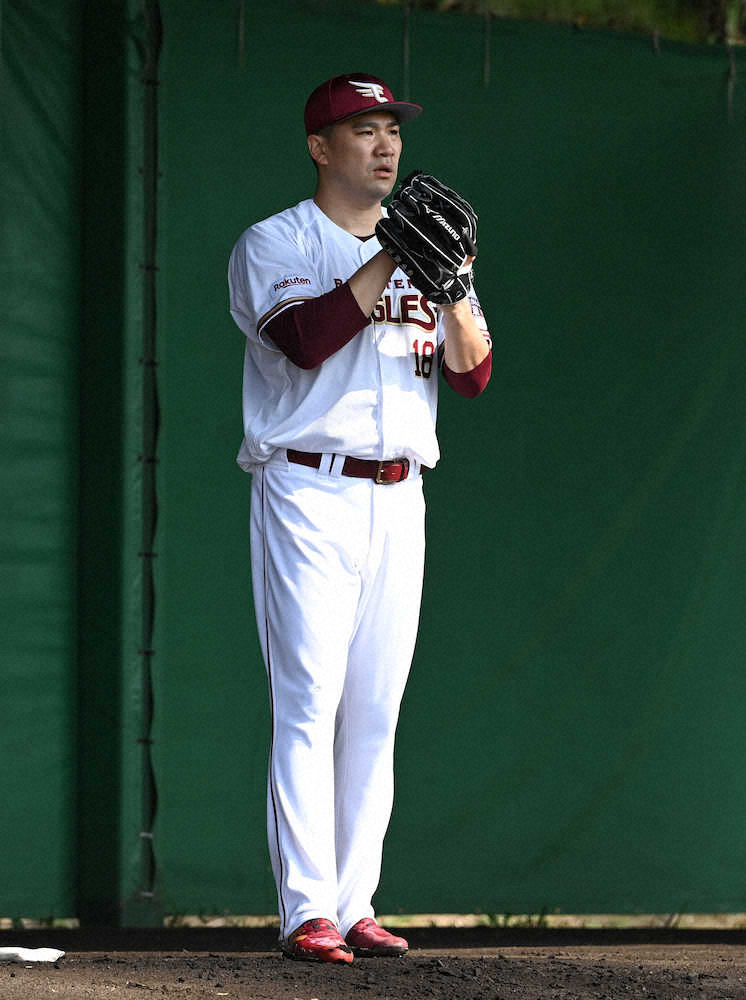 胸の前にドンとグラブを突き出す。裾の長い左足はスーッと巻き気味に後方へ引かれる。楽天に復帰した田中将が背番号18のユニホーム姿を初披露し、ノーワインドアップから40球を投げ込んだ。