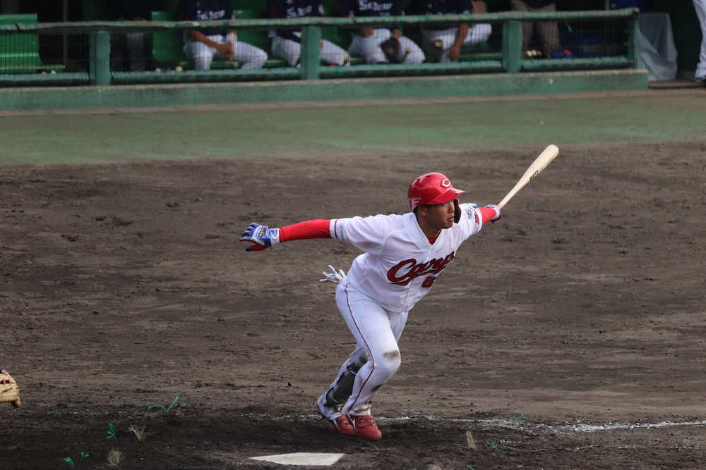 広島「チーム1号」は石原! 坂倉のいぬ間に捕手生き残りアピールだ