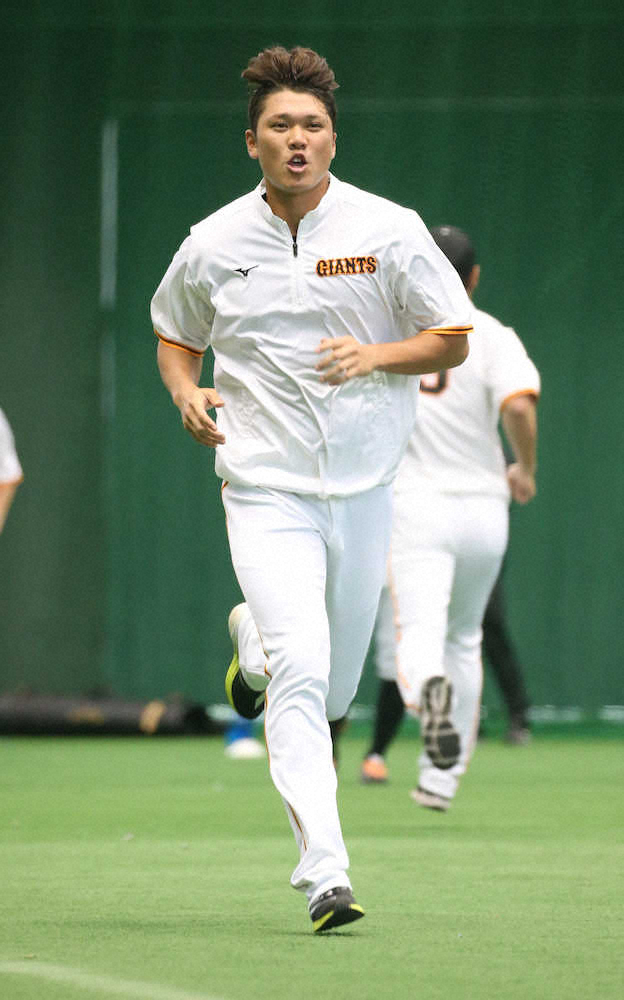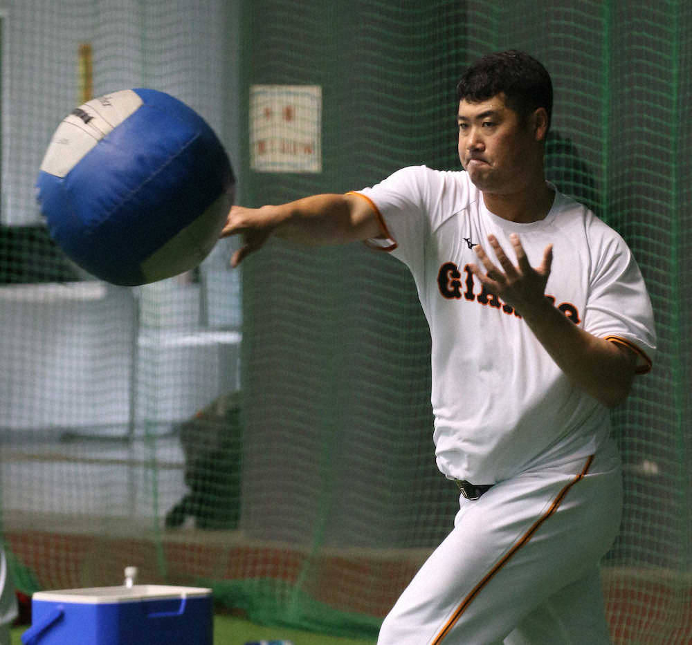 <巨人沖縄キャンプ>この日は室内練習場となったS班 (撮影・森沢裕)=11日、那覇市
