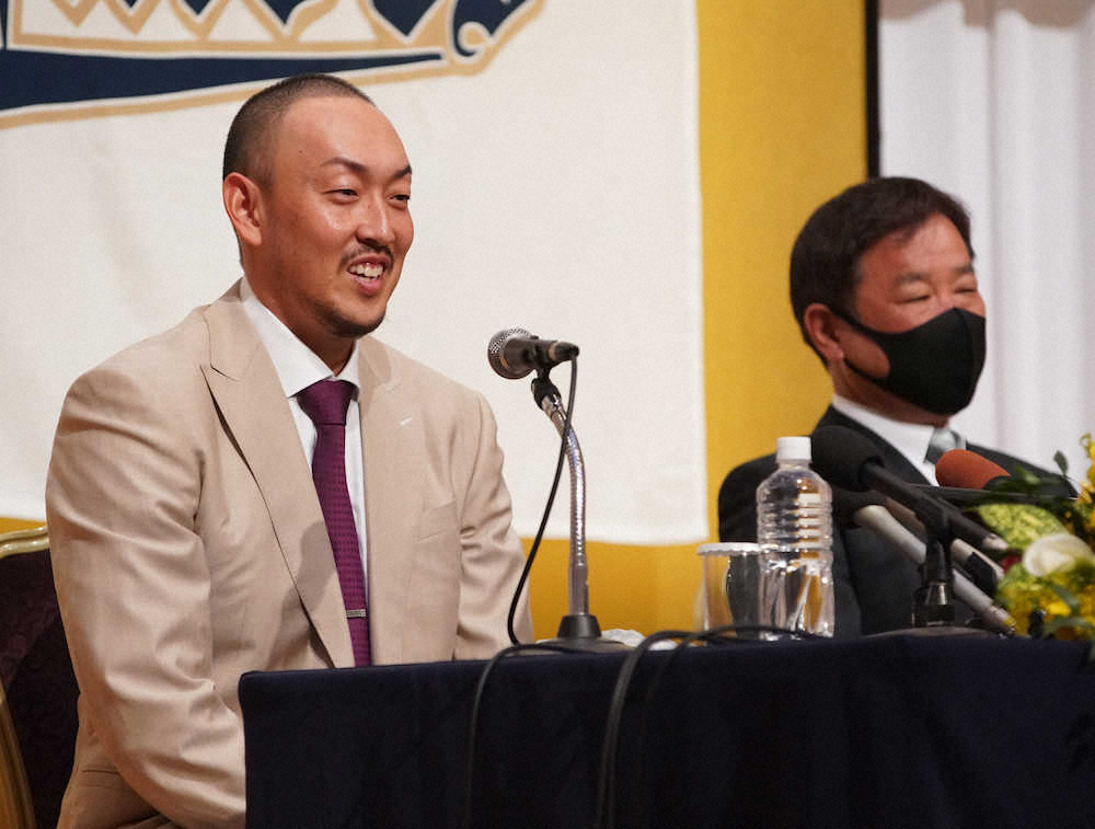強い覚悟が、にじみ出ていた。古巣復帰の合意発表から4日。平野佳は丸刈り姿で会見に臨み決意表明した。