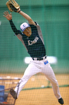 <西武キャンプ>早出特守で汗を流す若林(撮影・尾崎 有希)=15日、宮崎・南郷