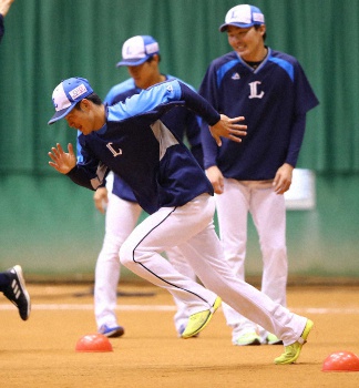 <西武キャンプ>ダッシュする若林(撮影・尾崎 有希)=15日、宮崎・南郷
