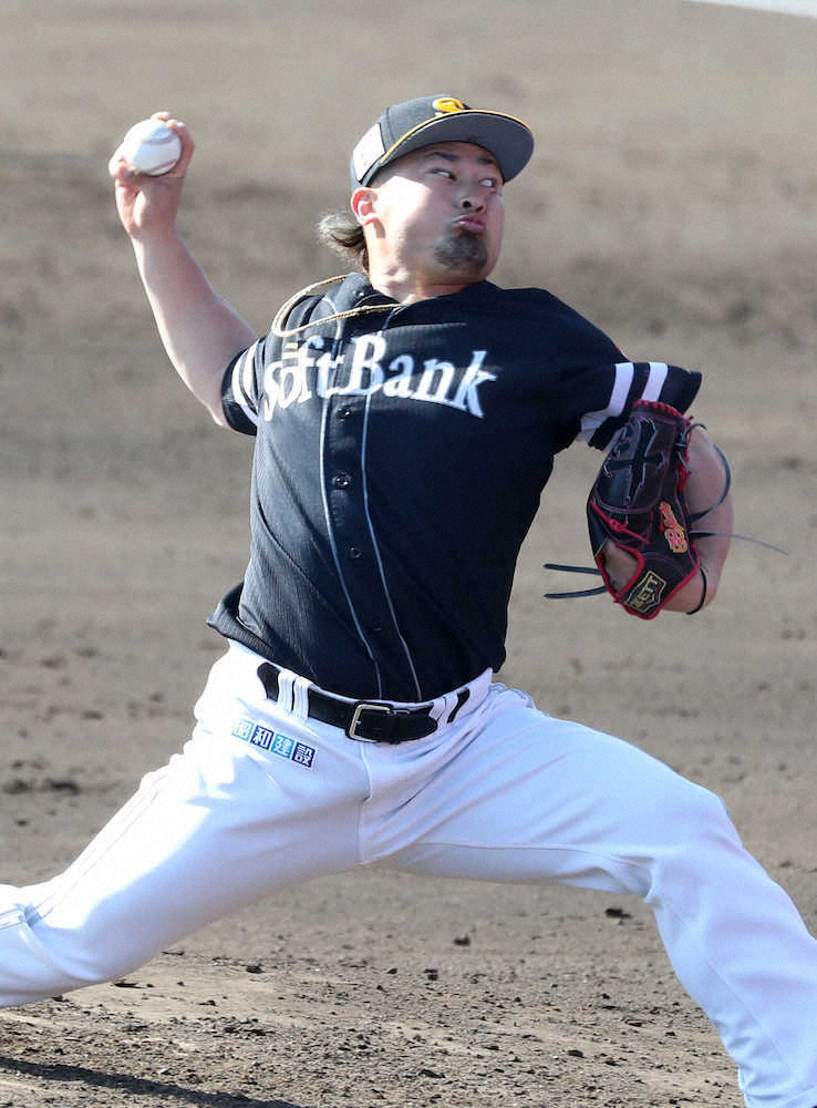 <ソフトバンク春季キャンプ、紅白戦>1イニングを3人で抑えた森(撮影・中村 達也)=15日、宮崎・生目の杜