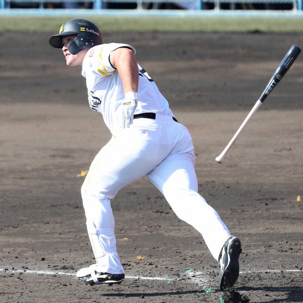 <ソフトバンク春季キャンプ、紅白戦>2回1死、左越え本塁打を放ったリチャード(撮影・中村 達也)=15日、宮崎・生目の杜