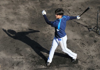 <西武キャンプ>居残りで打撃練習する川野(撮影・尾崎 有希)=15日、宮崎・南郷