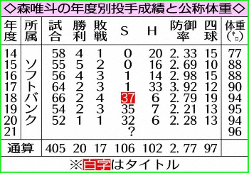 減らすのは、体重だけではない。今シーズンの数字目標を問われると「四球をもっと少なくしたい。1年通して1桁。5は切りたい」と真顔で言った。元々、高い制球力を誇り55試合に登板した15年に自己最少の10与四球。1桁は現実的な数字と言える。