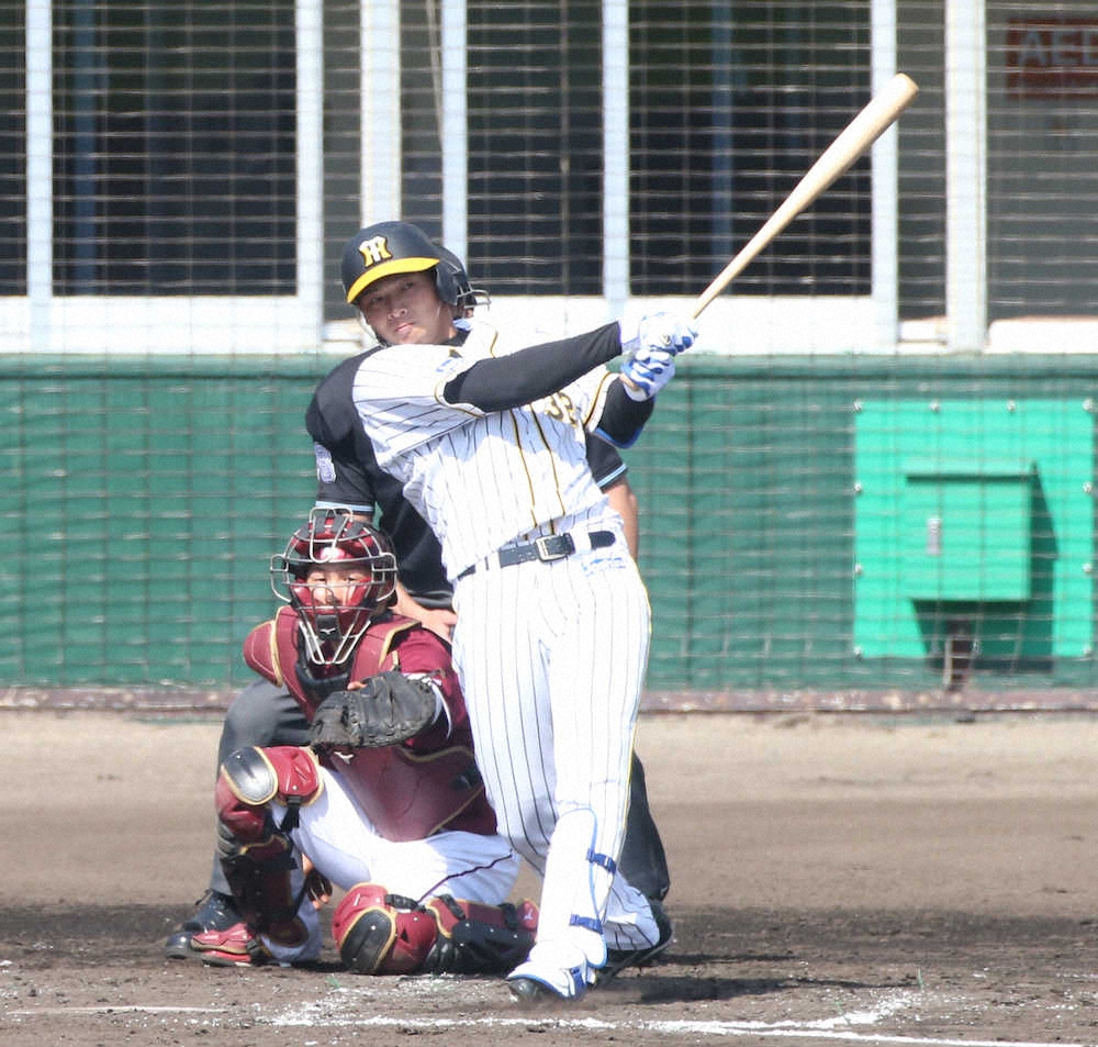1軍で初めて4番に座った阪神・井上が2打席目で結果を出した。4回、中前打で出塁した佐藤輝を一塁に置き、左腕・池田の内角真っすぐを左翼線に運ぶ二塁打。二、三塁と好機を拡大し1死後、原口の中前打で逆転の生還を果たした。初回は高田萌の前に見逃し三振に倒れていた。14日の練習試合・広島戦で4番を打つ予定だったが、試合前の豪雨で中止となり「まだ早いということです」と話していた。
