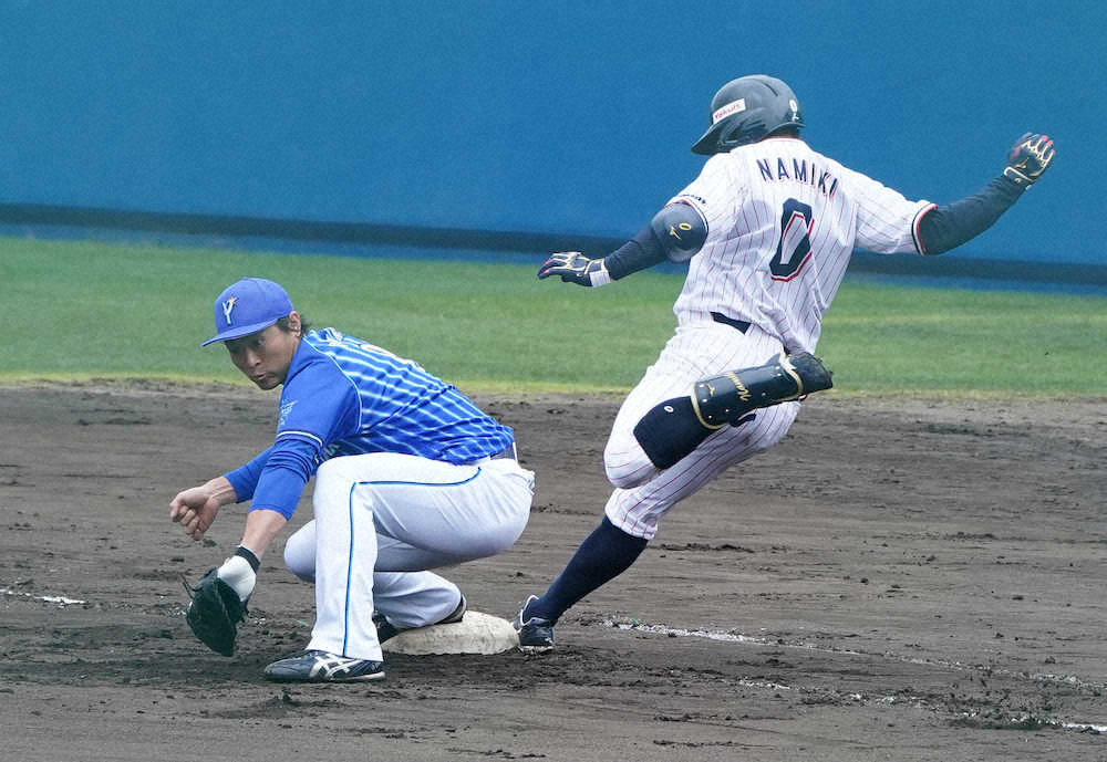 「並」じゃない足を遺憾なく発揮した。4回無死。ヤクルト・並木は打球がバウンドして投手の頭上に高く弾む間に1メートル70の小柄な体を加速させた。投手・京山のミスを誘う。無理もない。4秒を切れば俊足とされる一塁到達タイムは手動計測ながら右打者では驚異の3秒93。朝の雨で水気を含んだグラウンドも、ものともしなかった。
