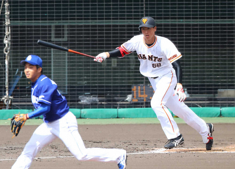 <巨・中>2回2死、ニゴロに倒れる秋広。投手・山本 (撮影・光山 貴大)