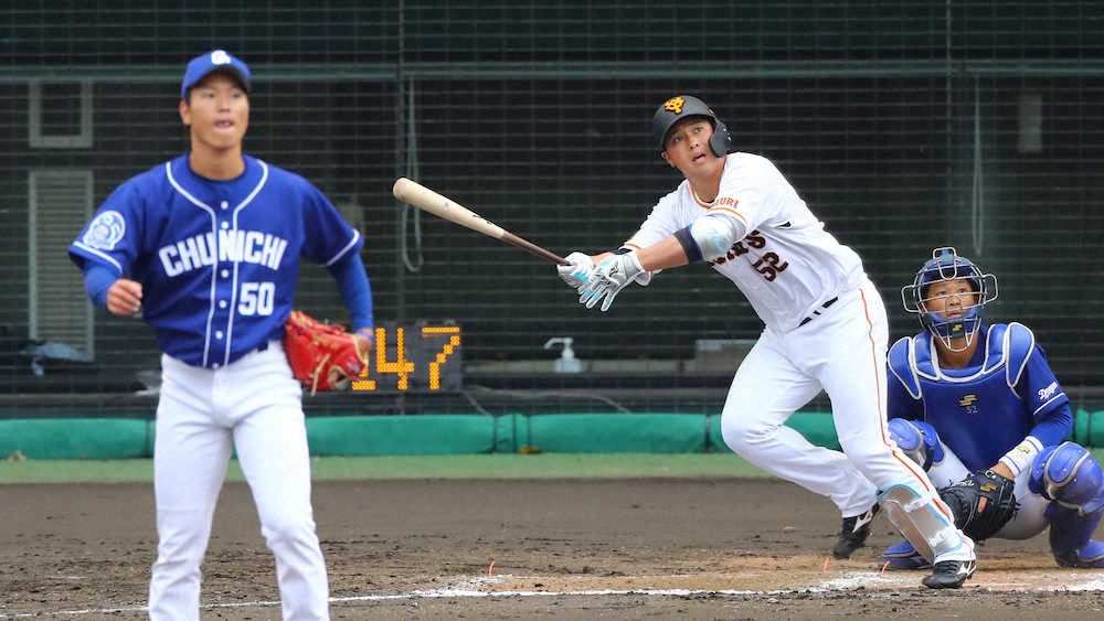 原監督からは前夜、宿舎で「おまえさん、何やってんだ」と一喝された。吉川との二塁レギュラー争いを期待されているがゆえだ。午前中のティー打撃ではトスを上げてもらった。「いいスイングだ」などと声を掛けられ、体の右側で壁をつくり、開かずに打つよう指導を受けた。前日は3球連続で見逃したが、この日はファーストストライクから強振。5球目の外角の147キロ直球を、指揮官の教え通り体を開かずに捉え、チームの対外試合1号で初勝利に導いた。