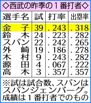 西武の昨季の1番打者 Photo by スポニチ 西武 今季の1、2番「ねこげん」で固定だ!辻監督「大きな期待をしている」 ギャラリーで見る この記事のフォト 2021年02月20日の画像一覧 もっと見る 2021年02月20日の画像をもっと見る