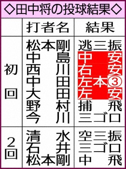 お互い出番を終え、試合中に球場内で出くわした。「“お久しぶりで~す”と笑顔で言われましたね。余裕な笑みであいさつされた」という田中将は「打つなよ!」と冗談めかして突っ込んだ。「たまたまです」と返した中田だが「これから(対戦する)毎朝、嫌な気分になる」と警戒感を強めた。