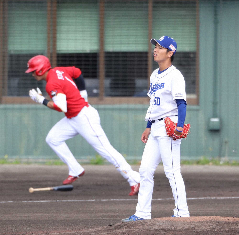 <練習試合 中・広> 1回2死、鈴木誠に右越えソロを打たれた清水(撮影・大森 寛明)=23日、沖縄・北谷