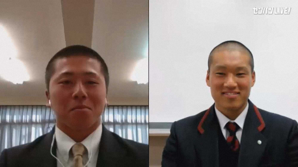 大阪桐蔭の池田主将(左)と智弁学園の山下主将(センバツLIVE!から)