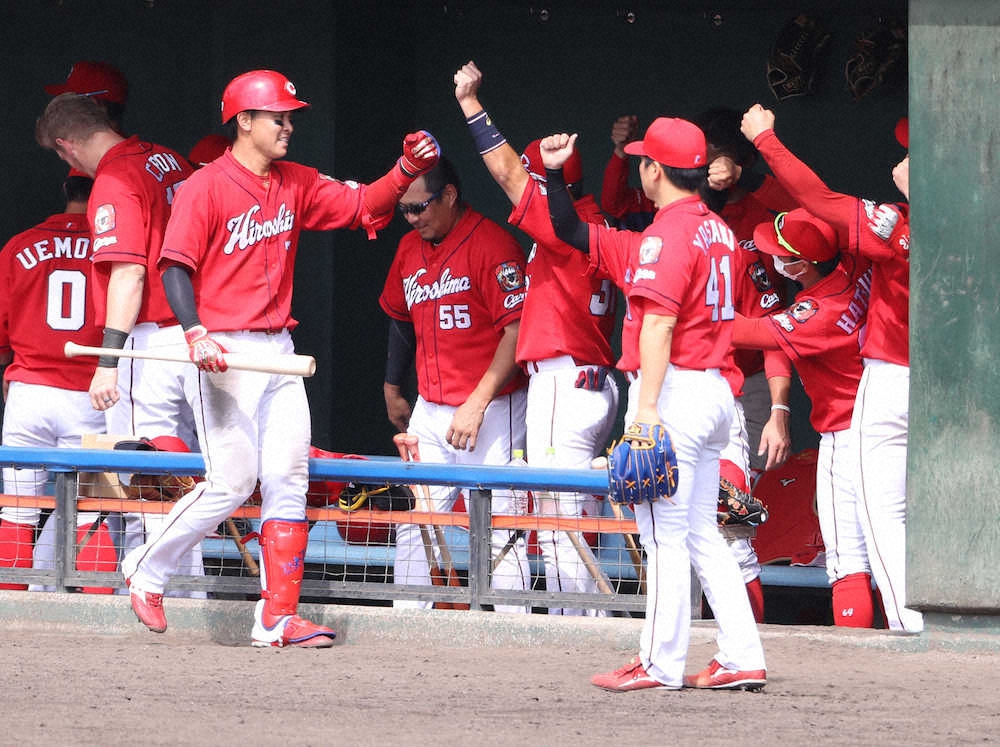 広島・堂林も鈴木誠に続いて今春の対外試合1号を放った。