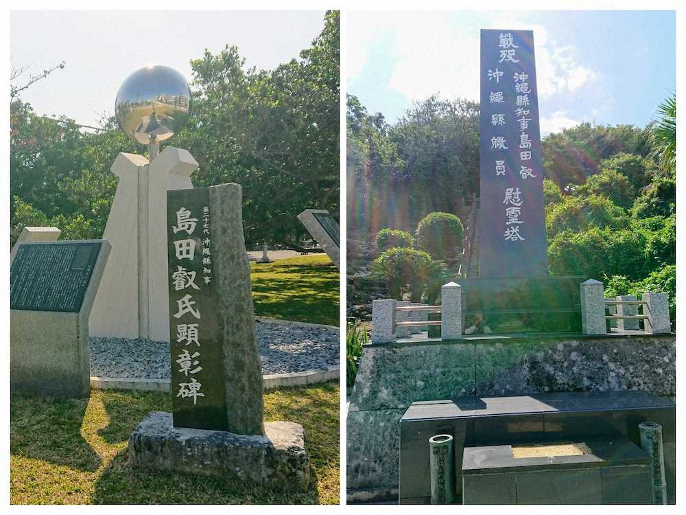 那覇・奥武山公園内に建つ「島田叡氏顕彰碑」を訪ねた。十数年、キャンプ取材の沖縄滞在中、何度も拝礼している。