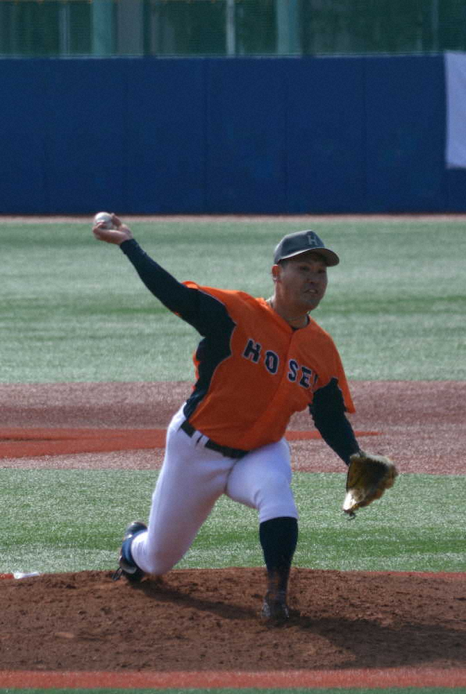 法大プロ注目右腕・古屋敷 5球団スカウトの前で3回無失点5K 巨人・高田スカウト「順調」