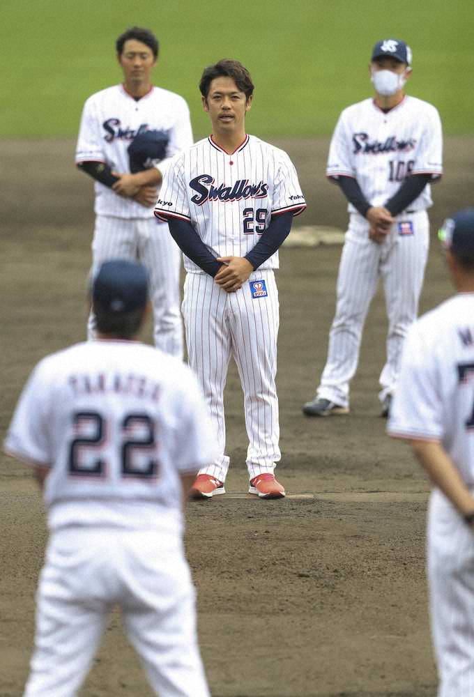 2年ぶり5度目の開幕投手に決まったヤクルト・小川(中央)(共同)