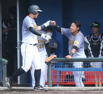 全てが規格外!阪神ドラ1佐藤輝が「通天閣打法」で先制打 対外試合打率・394で本物証明