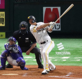 ▼ソフトバンク今宮(3回に中越えソロ。両ふくらはぎの不調から復帰し2安打した前日に続く活躍)体の回転でうまくスイングできた。まだまだ若い選手には負けません。