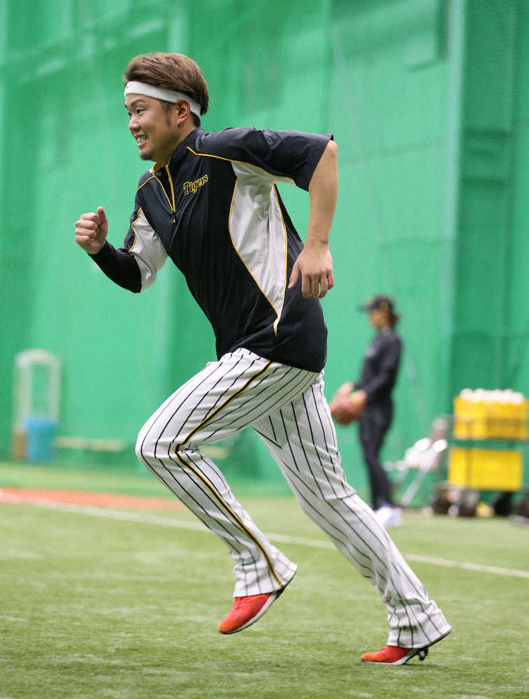 <阪神投手指名練習>ショートダッシュをする西勇(撮影・坂田 高浩)
