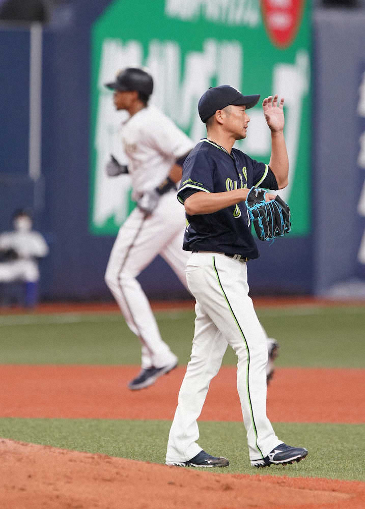 <オ・ヤ>2回2死一塁、モヤに2ランを浴び7失点の石川はガックリ打球の行方を見つめる(影・井垣 忠夫)
