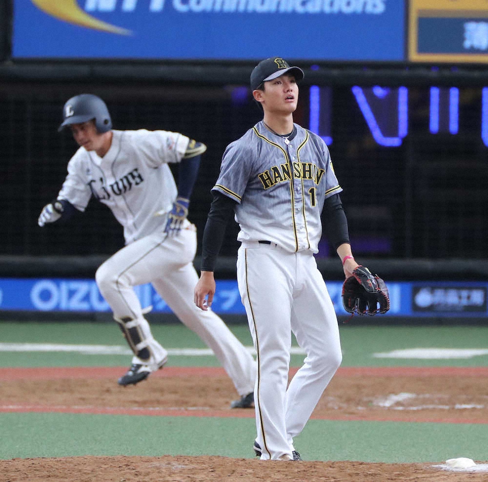 <西・神>9回無死、ブランドンに左越えソロを打たれた阪神・西純(撮影・大森 寛明)