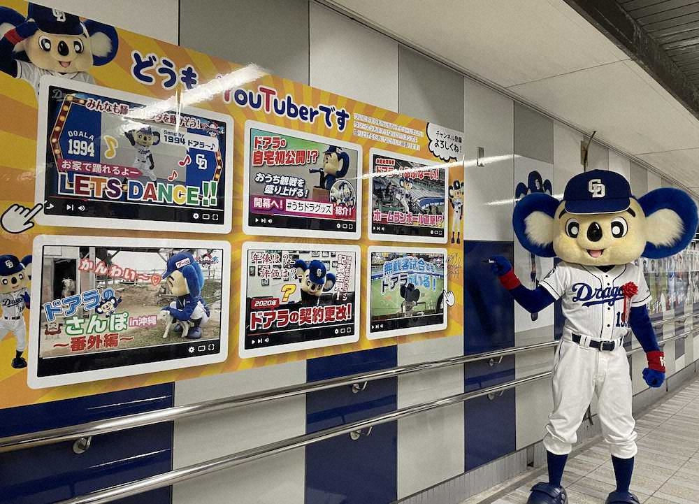 中日 選手ら写真パネル並ぶ「ドラゴンズロード」お披露目 ドアラコーナーも新設
