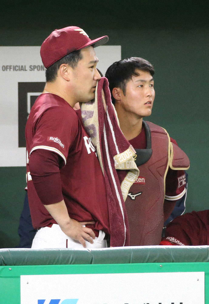 <巨・楽>田中将(左)を好リードした太田(撮影・森沢裕)