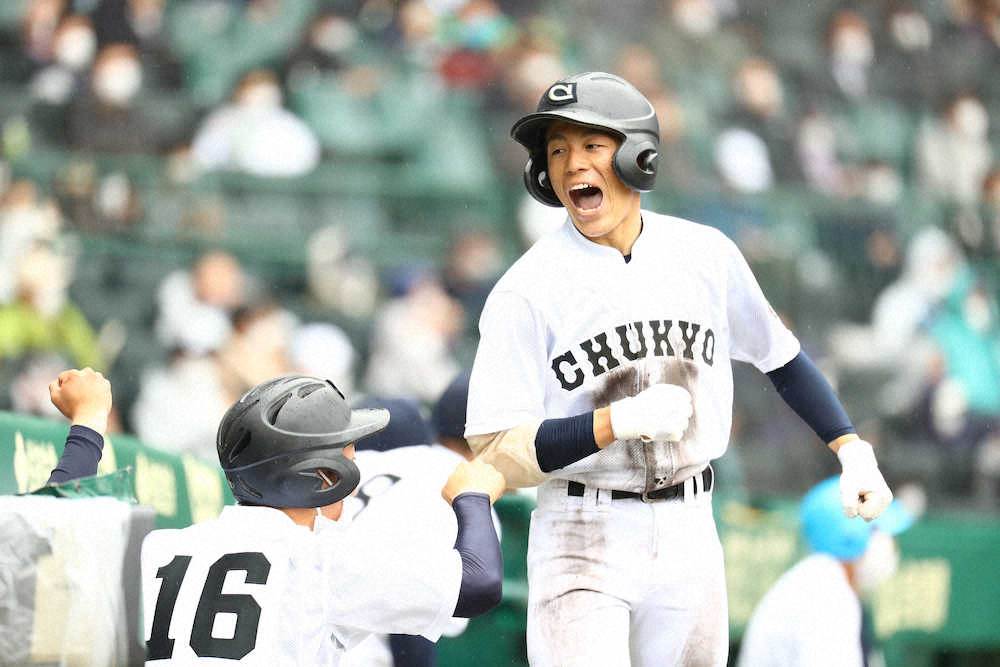 <中京大中京・専大松戸>7回2死二塁、櫛田のランニング本塁打で2点を先制し、雄叫びを上げる中京大中京・畔柳(左から2人目)。中央は専大松戸・深沢(撮影・北條 貴史) Photo by スポニチ 中京大中京 接戦制し2回戦へ!エース畔柳12K完封&櫛田決勝ランニング本… ギャラリーで見る この記事のフォト 2021年03月25日の画像一覧 もっと見る 2021年03月25日の画像をもっと見る