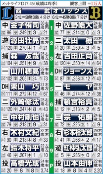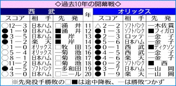 2021年の初陣の相手でもあるオリックスは昨季3勝1敗、防御率1・93と好相性。26日に投げ合う山本と前回に投げ合った昨年9月8日は8回まで無安打の快投を演じたが「いいイメージはあるんですけど、去年は去年。しっかりと新しい自分も出して違った投球ができたら」と引き締める。