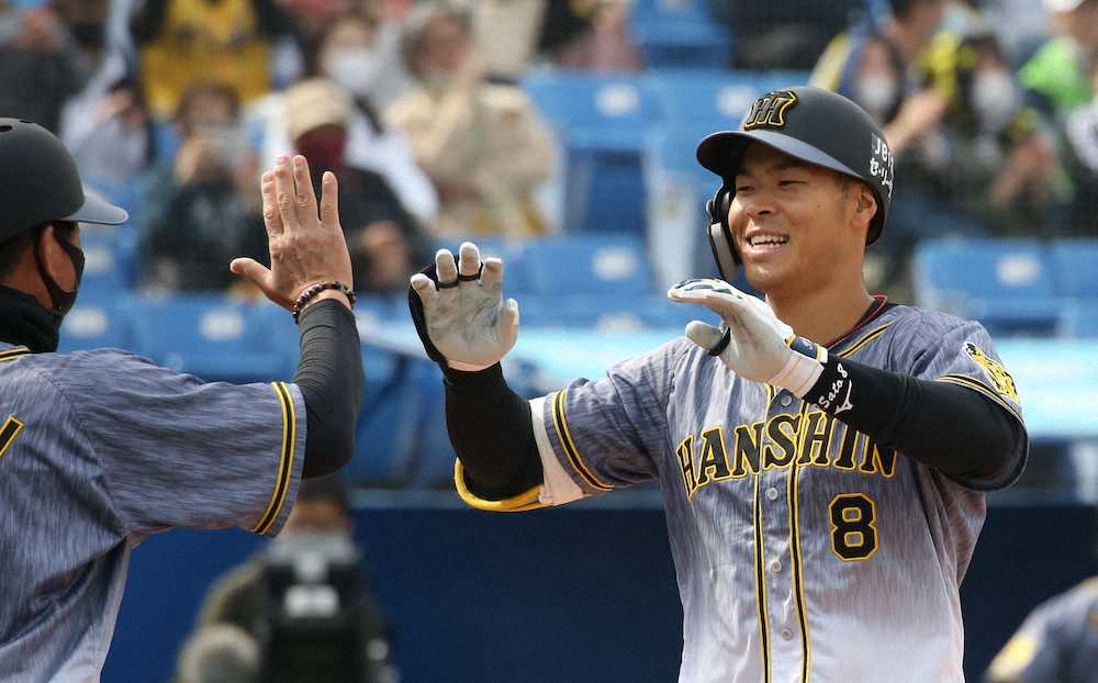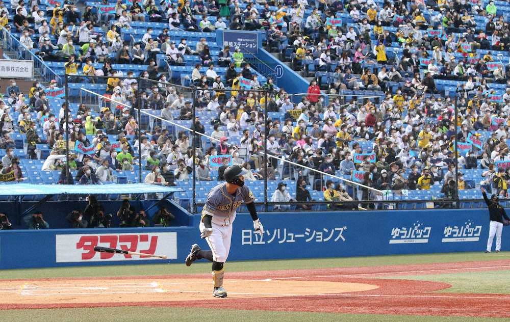 <ヤ・神(2)> 1回2死三塁、プロ初本塁打となる2ランを放ち、カメラに向かってポーズを決める佐藤輝(撮影・大森 寛明) Photo by スポニチ 阪神ドラ1佐藤輝 球団新人最速でプロ初本塁打「プロとして1歩目踏み出せ… ギャラリーで見る この記事のフォト 2021年03月27日の画像一覧 もっと見る 2021年03月27日の画像をもっと見る