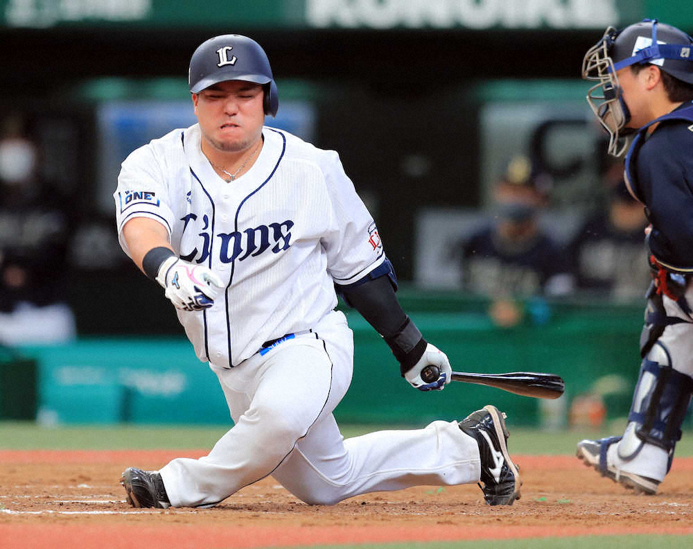 <西・オ2>4回無死 空振り三振に倒れる山川(撮影・久冨木 修)