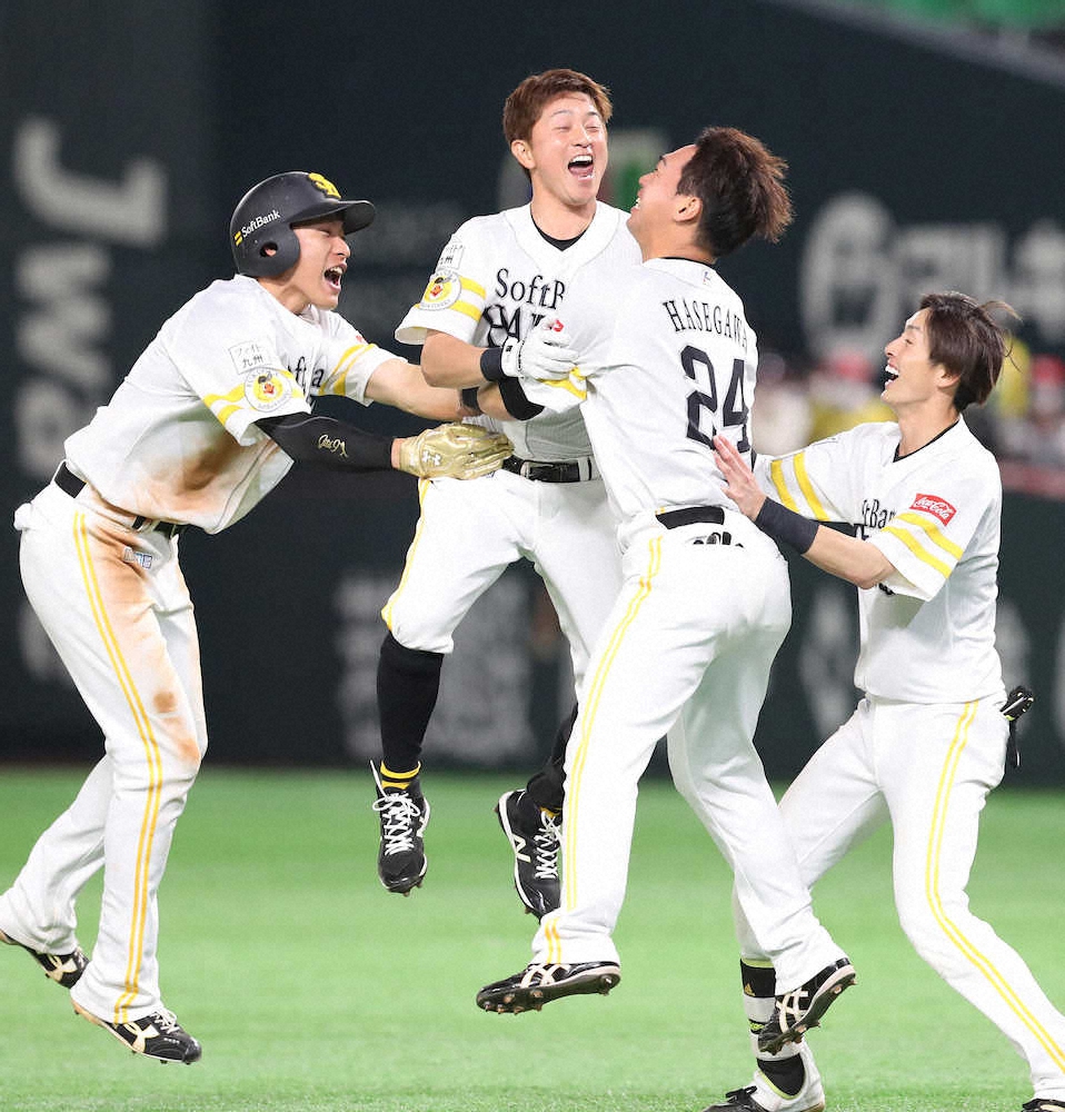 ソフトバンクが16年目のベテランの一振りでサヨナラ勝ちし、2年ぶりの開幕3連勝を飾った。柳田が敬遠されて9回2死満塁。ここで代打・川島慶三(37)がロッテ・益田から右前にサヨナラ2点適時打を放って、シーソーゲームにけりをつけた。